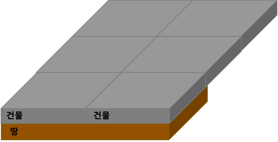 왼쪽에 보시는 것처럼 토지에 꽉 들어차게 건물을 지으면 해당 건물의 건폐율은 100%입니다.