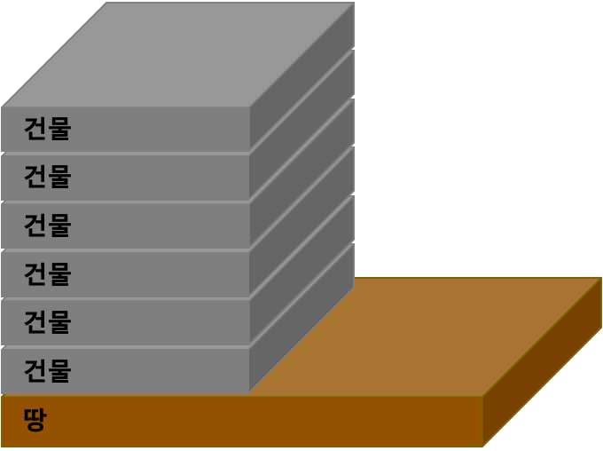용적률이 잘 와닿지 않으신가요? 쉽게 보려면 건물 내 층들을 토지 기준으로 줄 세워보면 됩니다.
