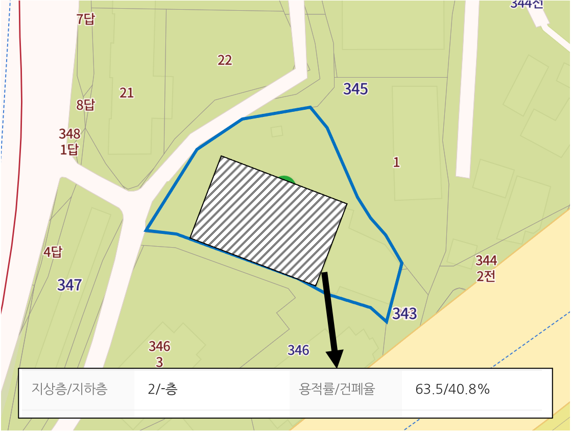 그럼 아래 건물의 건폐율과 용적률은 얼마일까요?